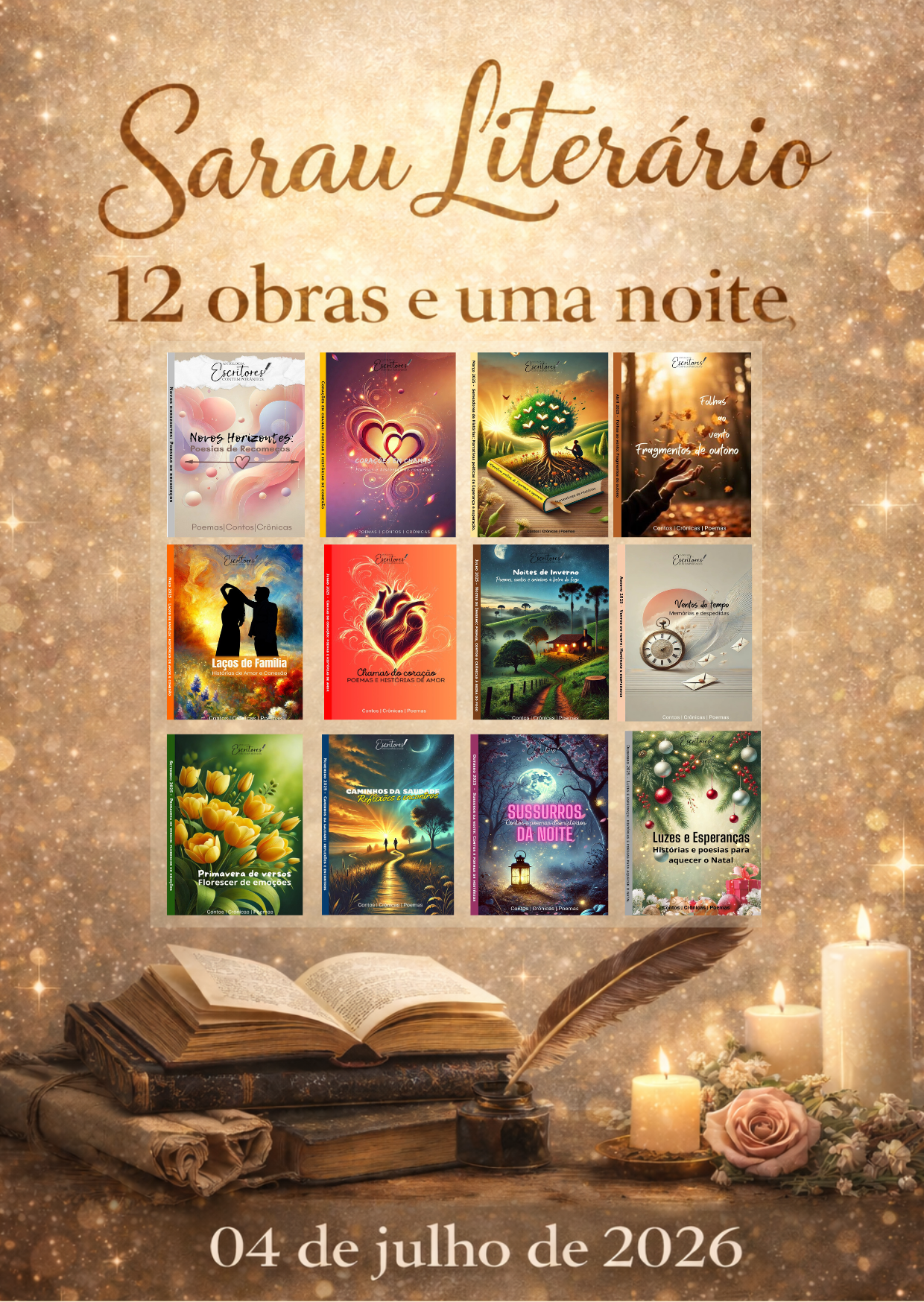 O Sarau Literário – 12 obras e uma noite é uma ação de apresentação pública de doze antologias produzidas com a participação de escritores da Família Literária, reunindo poemas, crônicas e contos em uma proposta coletiva de valorização da escrita contemporânea.