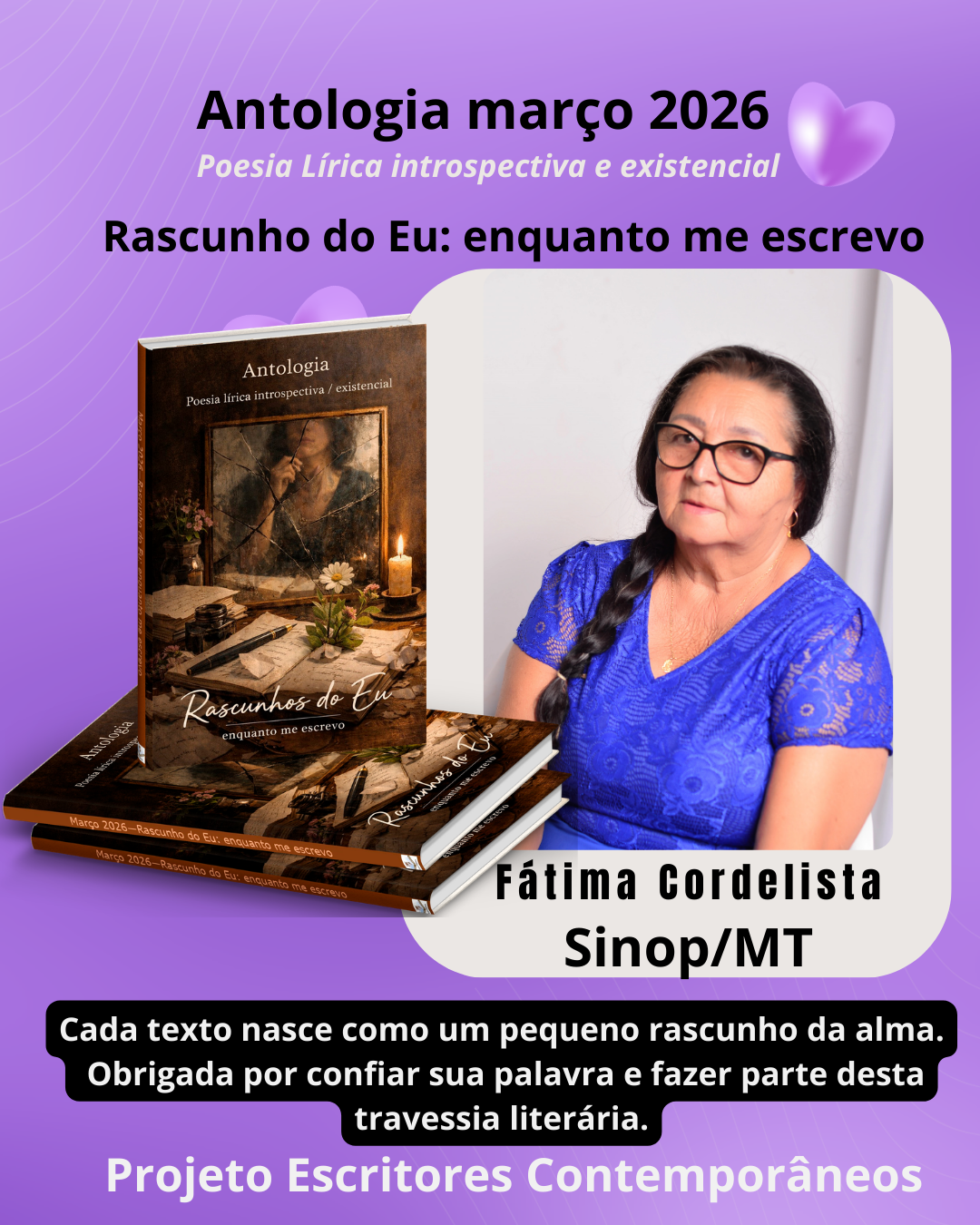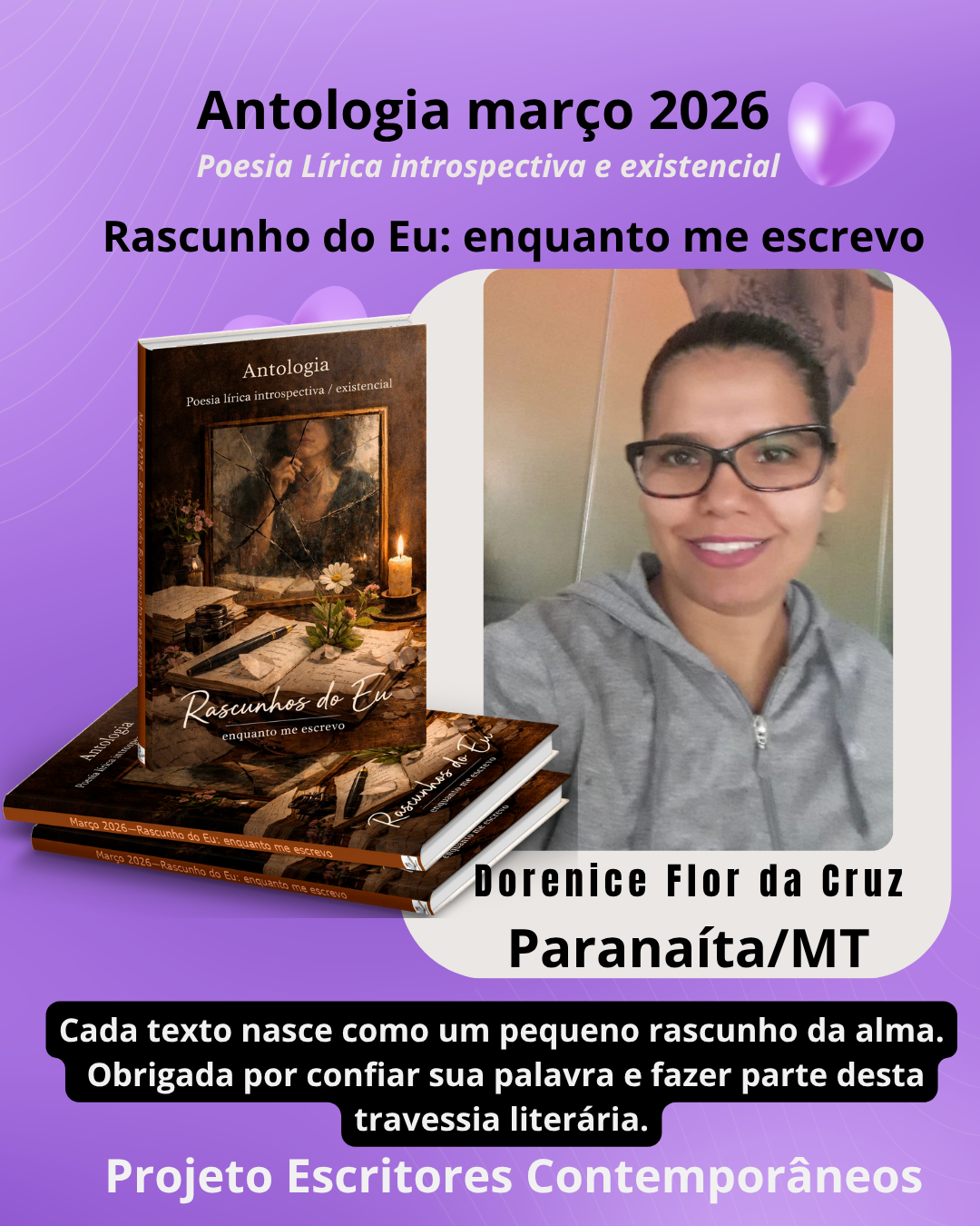Minha gratidão é imensa, e meu desejo é que continuemos juntos, escrevendo capítulos ainda mais belos nesta história que começou com um sonho e hoje floresce em versos, luz e poesia.