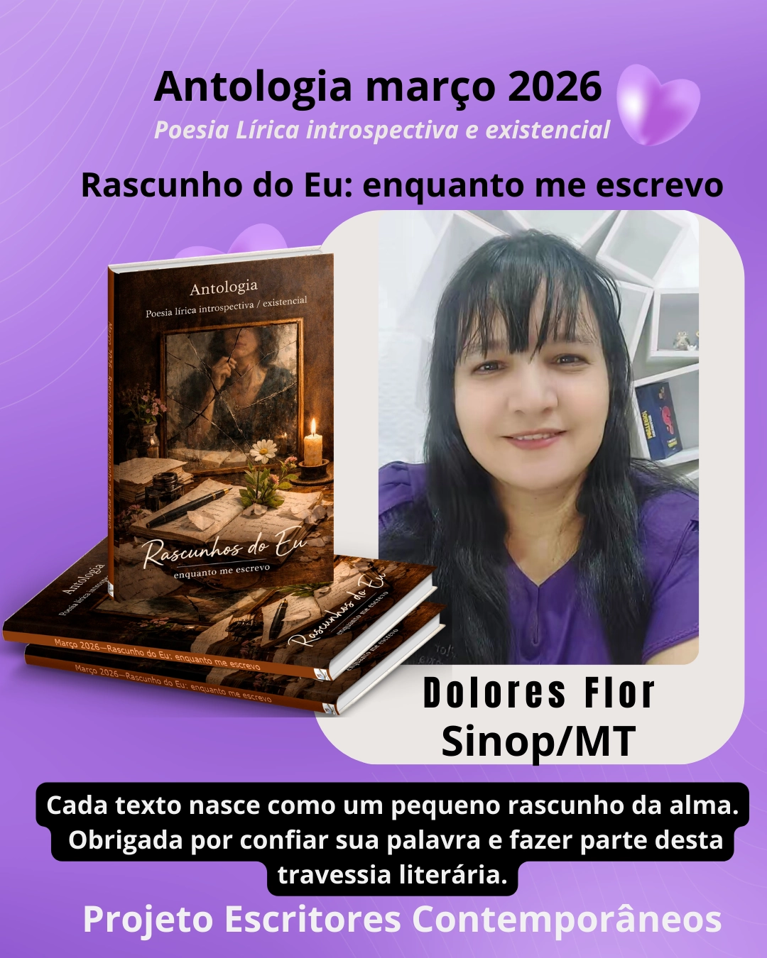 Em 2020, ingressei na família Literárias. Aqui é um lugar de muito trabalho, dedicação e organização, tudo comandado por nossa queridíssima Dolores Flor. Ela não mede esforços para promover e publicar, dando oportunidades aos escritores.