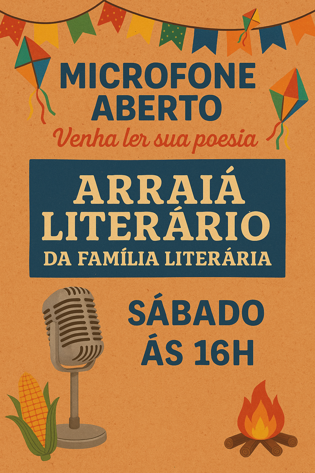 Neste sábado, a Família Literária convida todos os escritores, poetas e amantes da palavra para o nosso Arraiá Literário — uma celebração onde o verso dança, o poema se acende como fogueira, e a literatura vira festa!