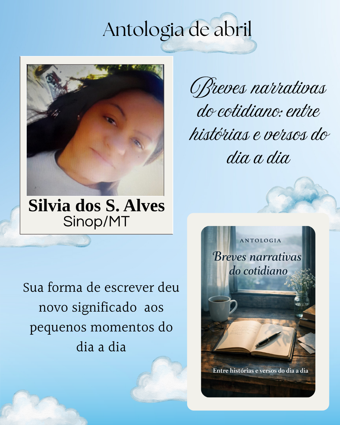 "Até que um dia, no grupo da escola, postaram um link: um concurso de poesia. Pequeno nos detalhes, mas imenso nas consequências. Foi o empurrão que eu não sabia que precisava. Com o coração apertado, enviei um poema. E o que aconteceu depois foi ainda mais surpreendente: fui uma das vencedoras do concurso Sinop, em Versos, conquistando o terceiro lugar. Não foi apenas uma vitória — foi um abraço da vida, dizendo que eu podia. “Foi assim que conheci a família literária.
